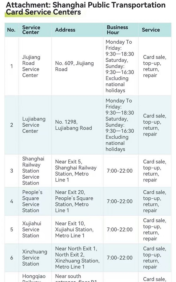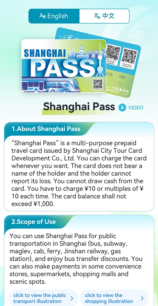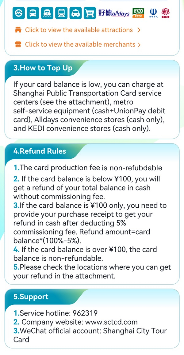 Website of Shanghai City Tour Card Company: www.sctcd.com; Hotline:021-63309120